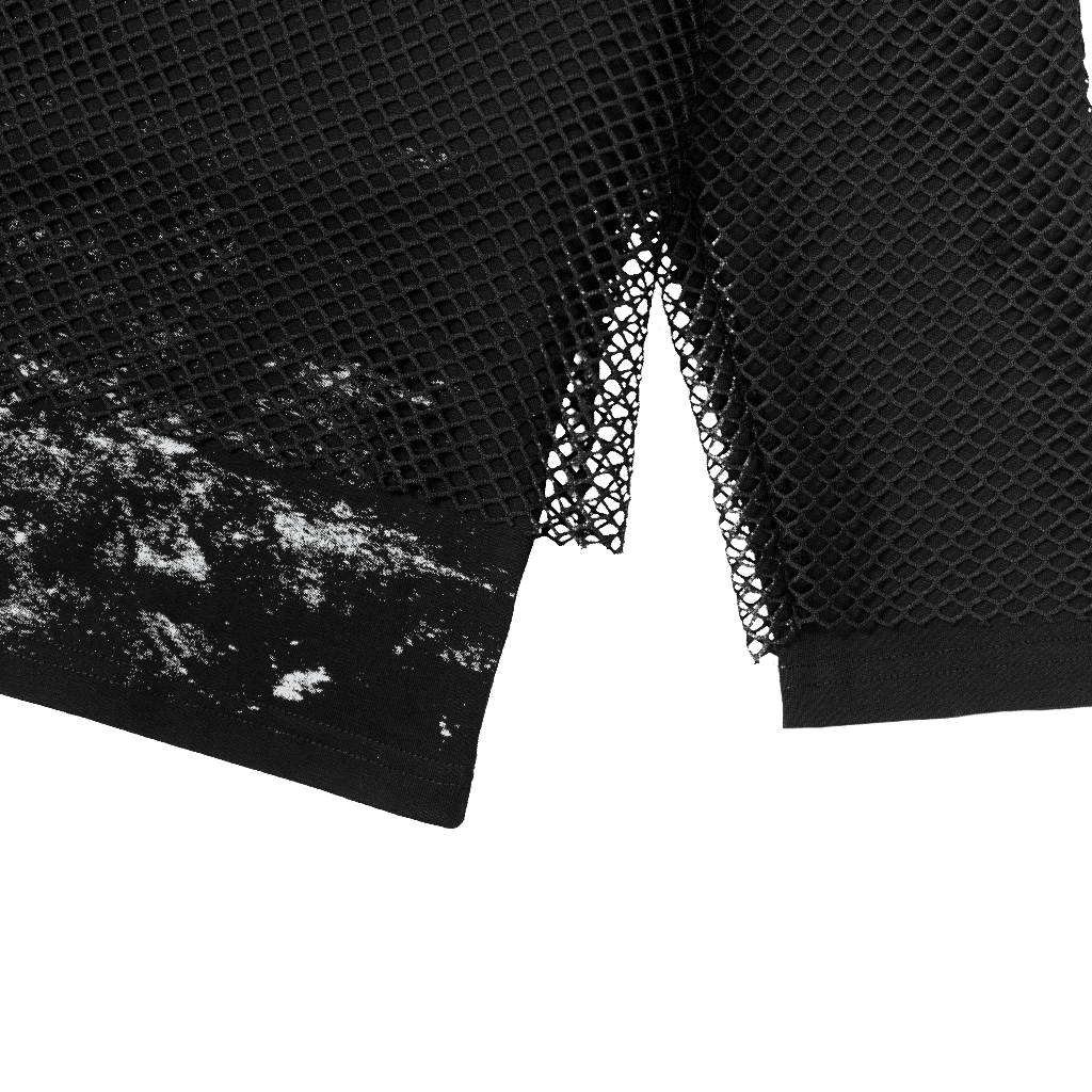 Designed in house, this garment was inspired by thalasahemephobia (blood ocean madness). Fabrics used were chosen with comfort and style in mind. The interior 100% cotton long sleeve tee is durable, comfortable and built to soften with wear. The mesh was chosen for durability and feel, adding style to the garment without restricting movement or becoming a sensory nightmare.